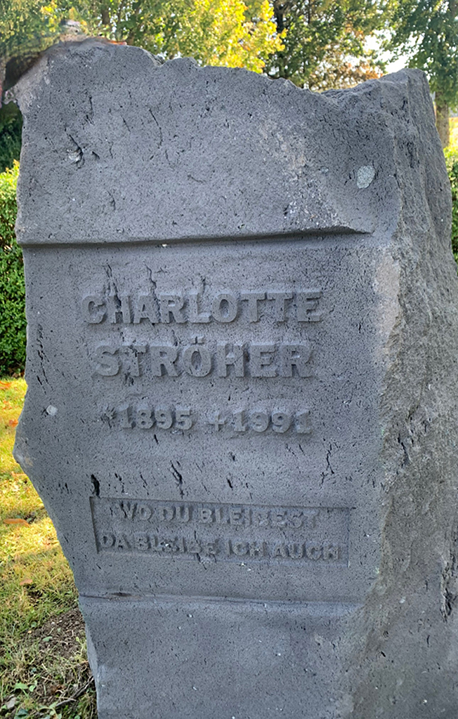 Auch auf ihr Betreiben hin hat der Freundeskreis Friedrich Karl Ströher auf dem Ehrenhain des Friedhofes in Irmenach in unmittelbarer Nähe des Grabsteines von Friedrich Karl Ströher einen an sie erinnernden Gedenkstein gesetzt.